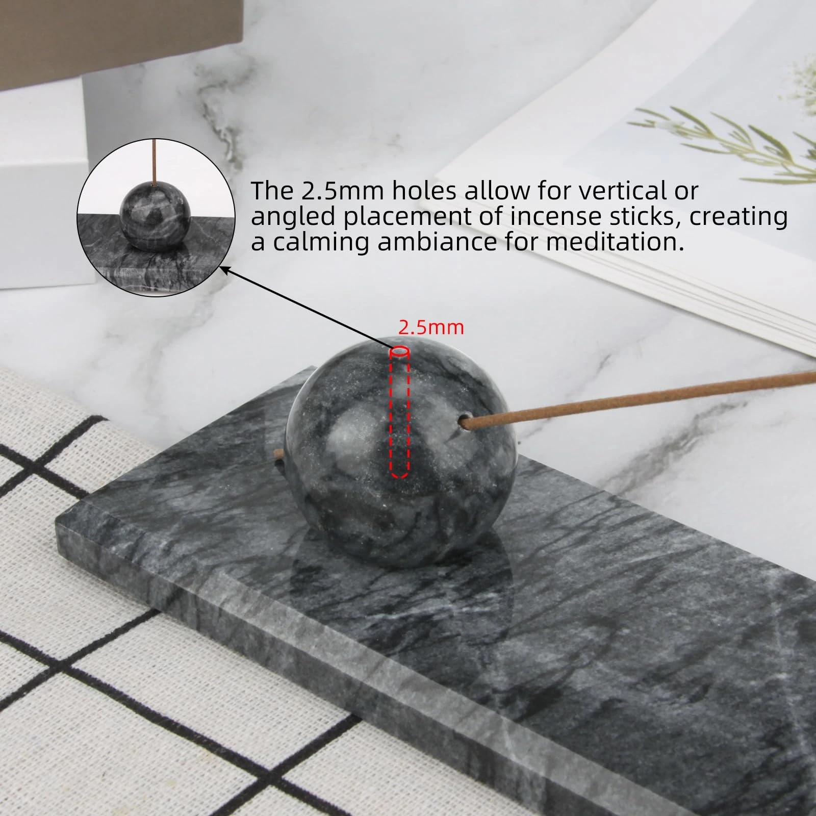 | Size | Marble board 25×6×1cm Incense Holder:Dia3.5×3cm |