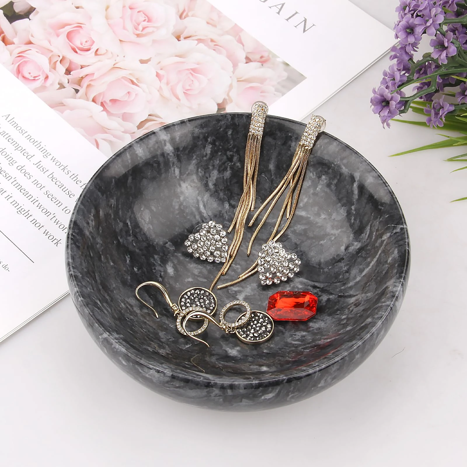 Components: 1 × Marble Product (Main Item). Accessories: Anti-slip Pad (affixed to the base to prevent sliding). Packaging: Inner Packaging: EPE foam or plastic film (for shock absorption and scratch protection); Outer Packaging: Corrugated cardboard carton. Packaging can be customized according to client requirements (e.g., addition of brand logos, gift box packaging, etc.).