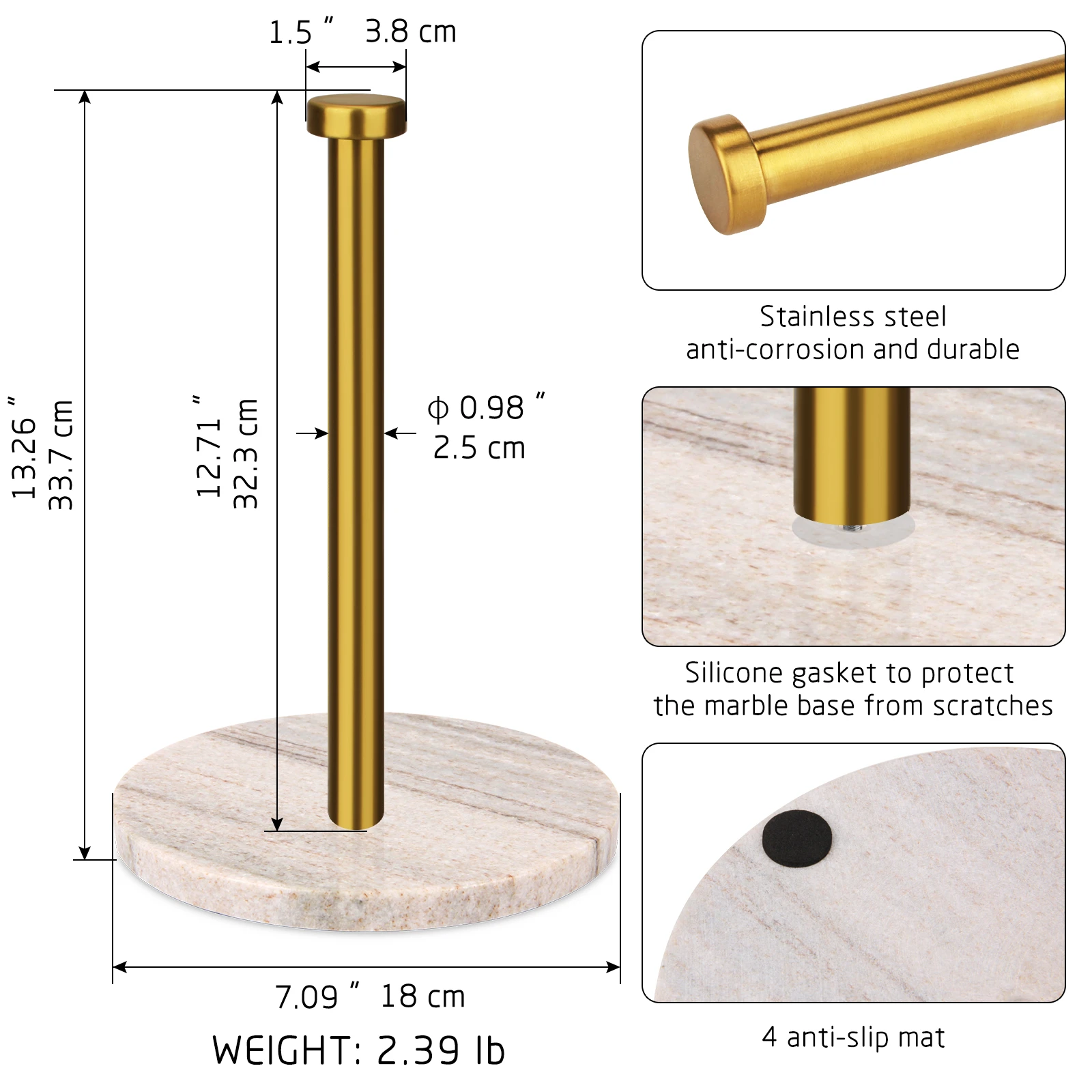 | Size | Marble base size :Dia 18*1.4cm , SS Pole:2.5*32.3cm |
