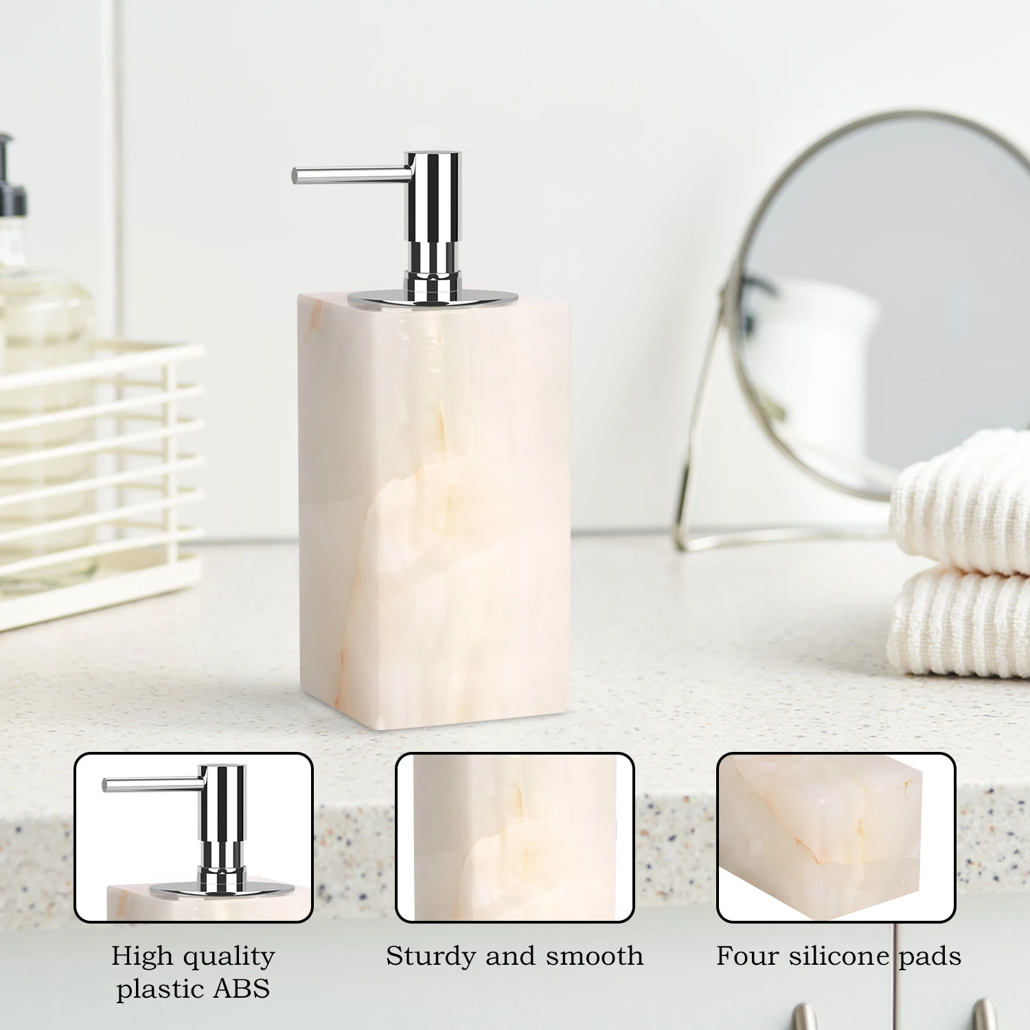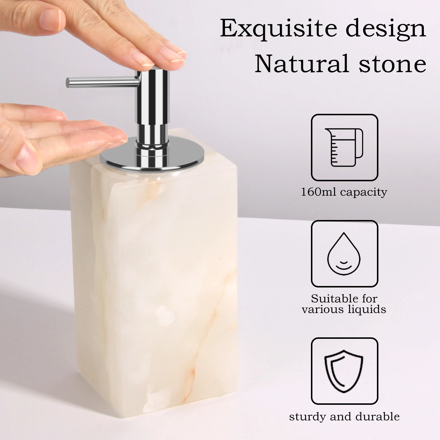 Suitable for holding and dispensing liquid soap, hand lotion, shampoo, and other personal care liquids in dry and humid indoor environments, ideal for daily household use and commercial settings.