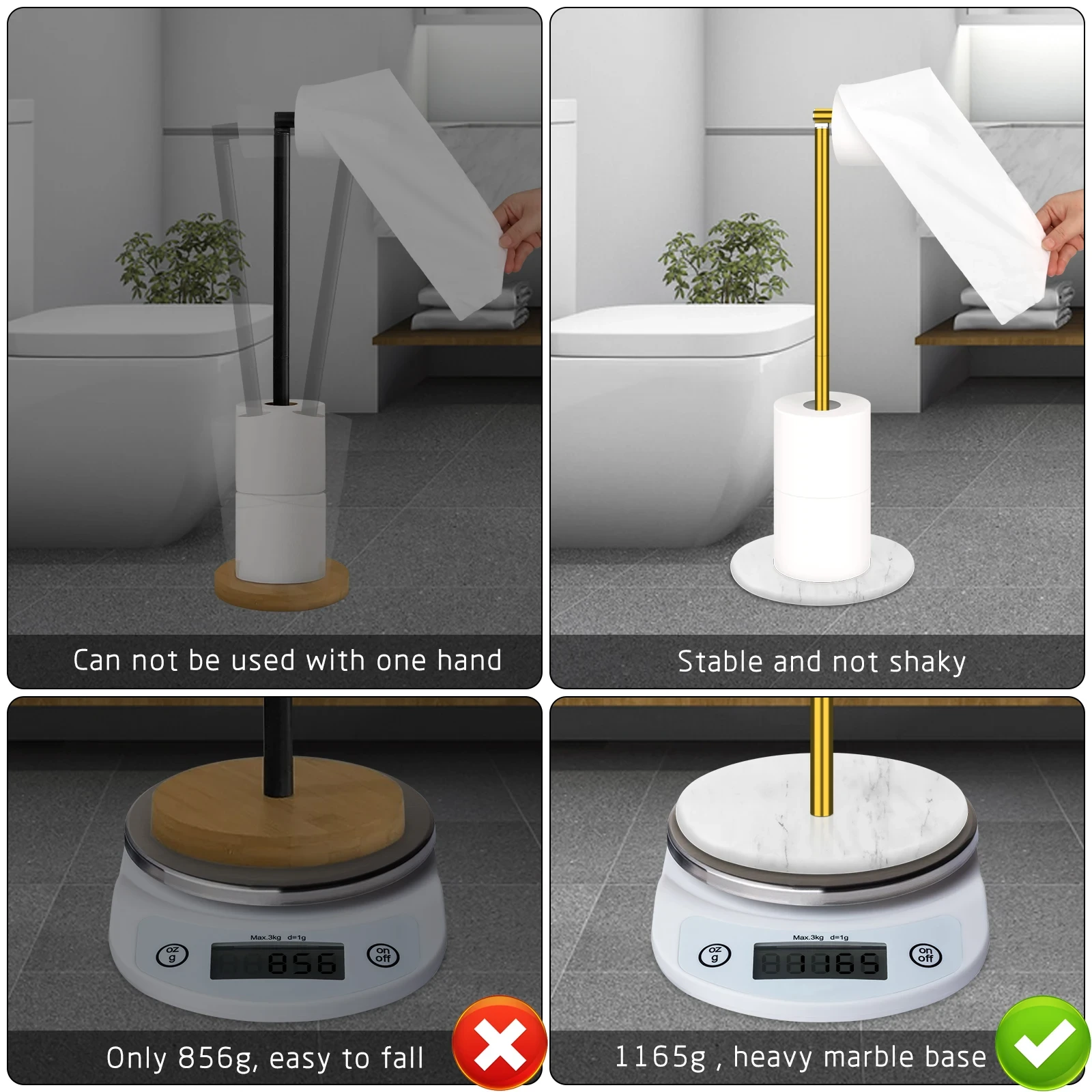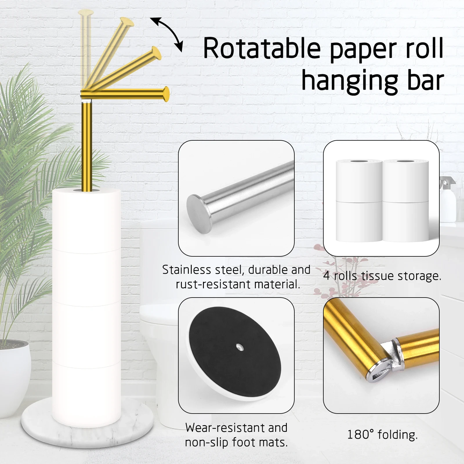 Suitable for holding standard-sized toilet paper rolls and standard toilet brushes in dry, humid bathroom environments, ideal for daily household use and commercial bathroom settings.