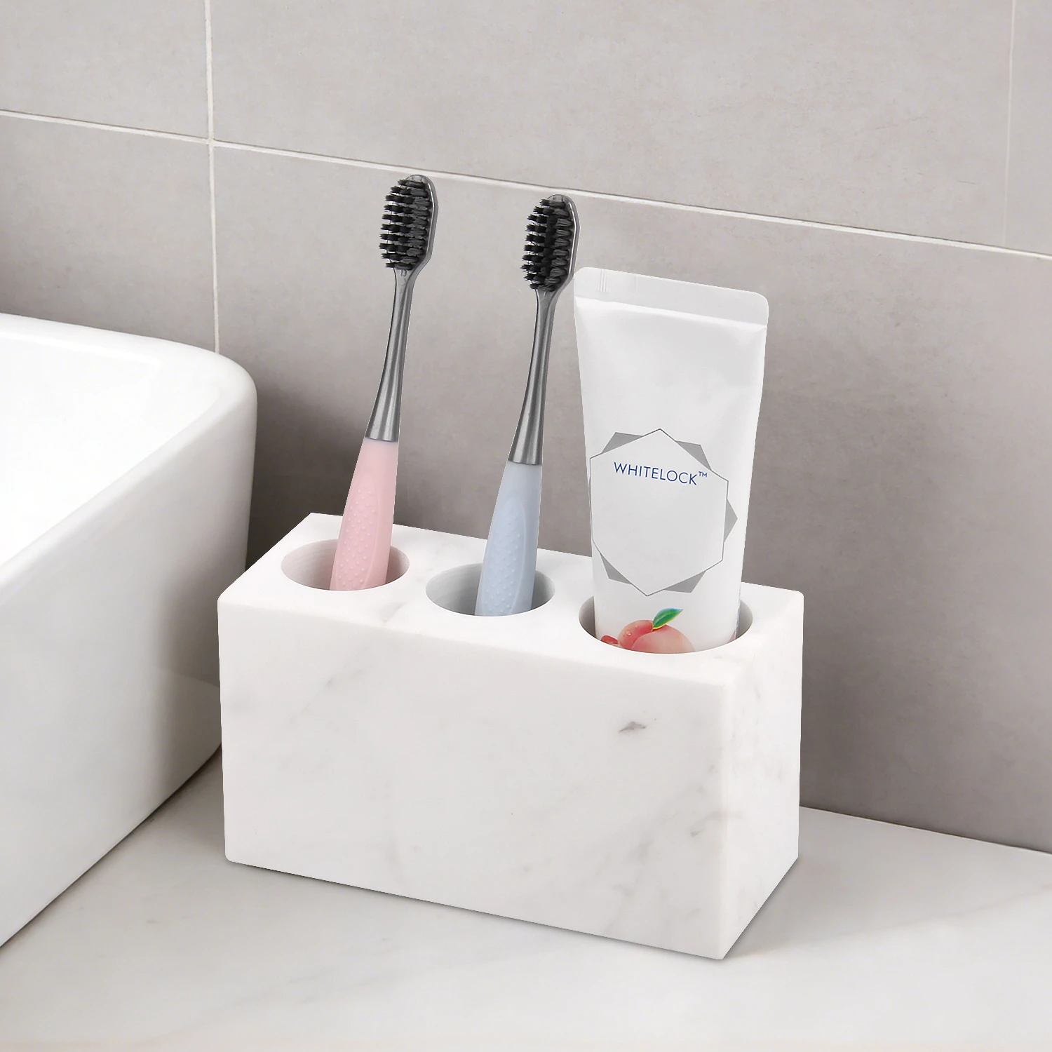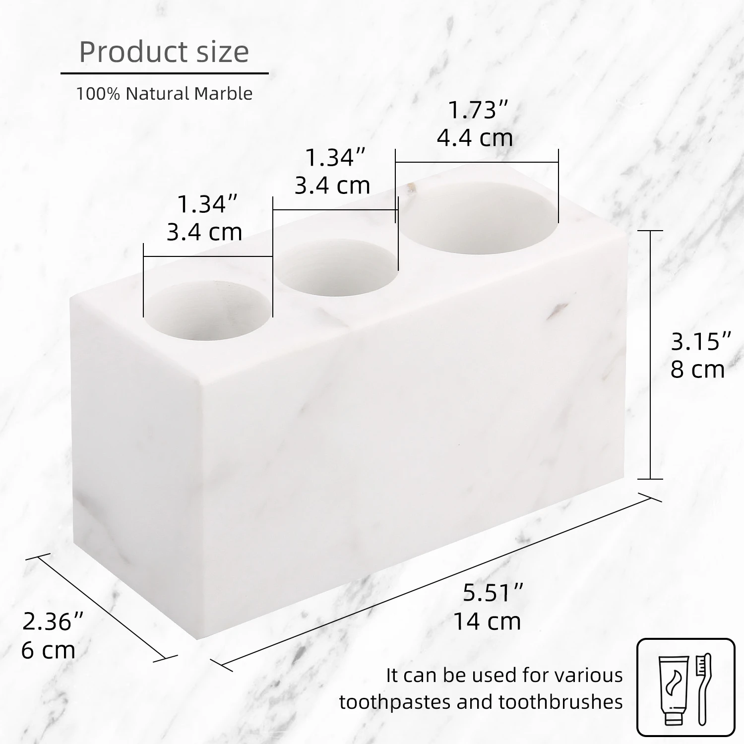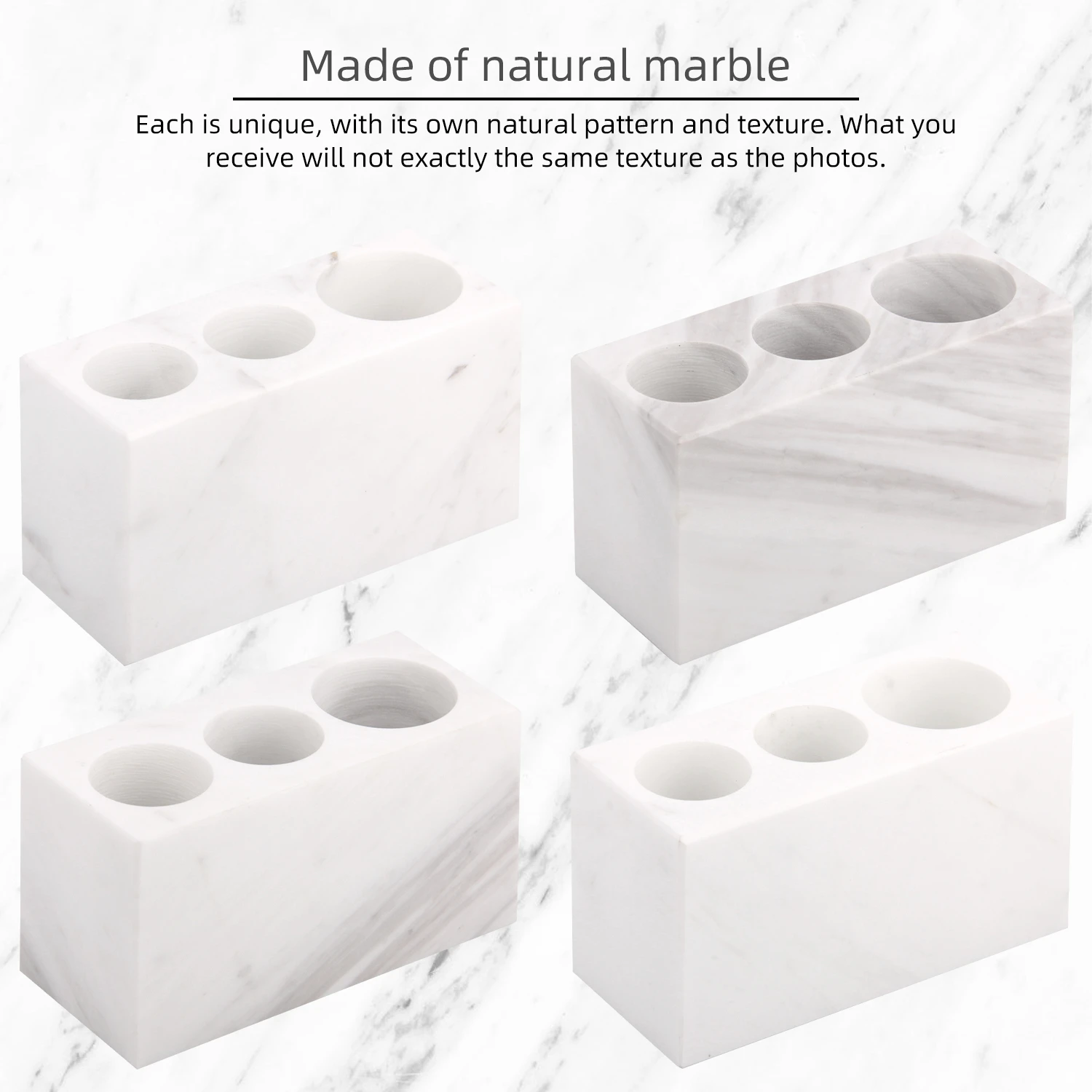 Natural Marble Toothbrush Holder 3 Slots, Stone Bathroom Organizer Countertop, Toothbrush and Toothp