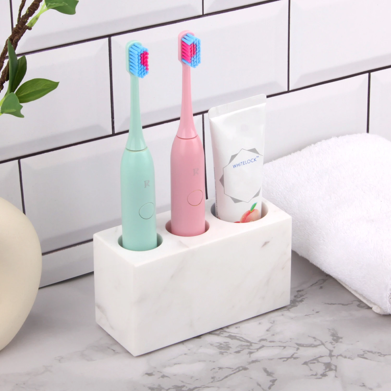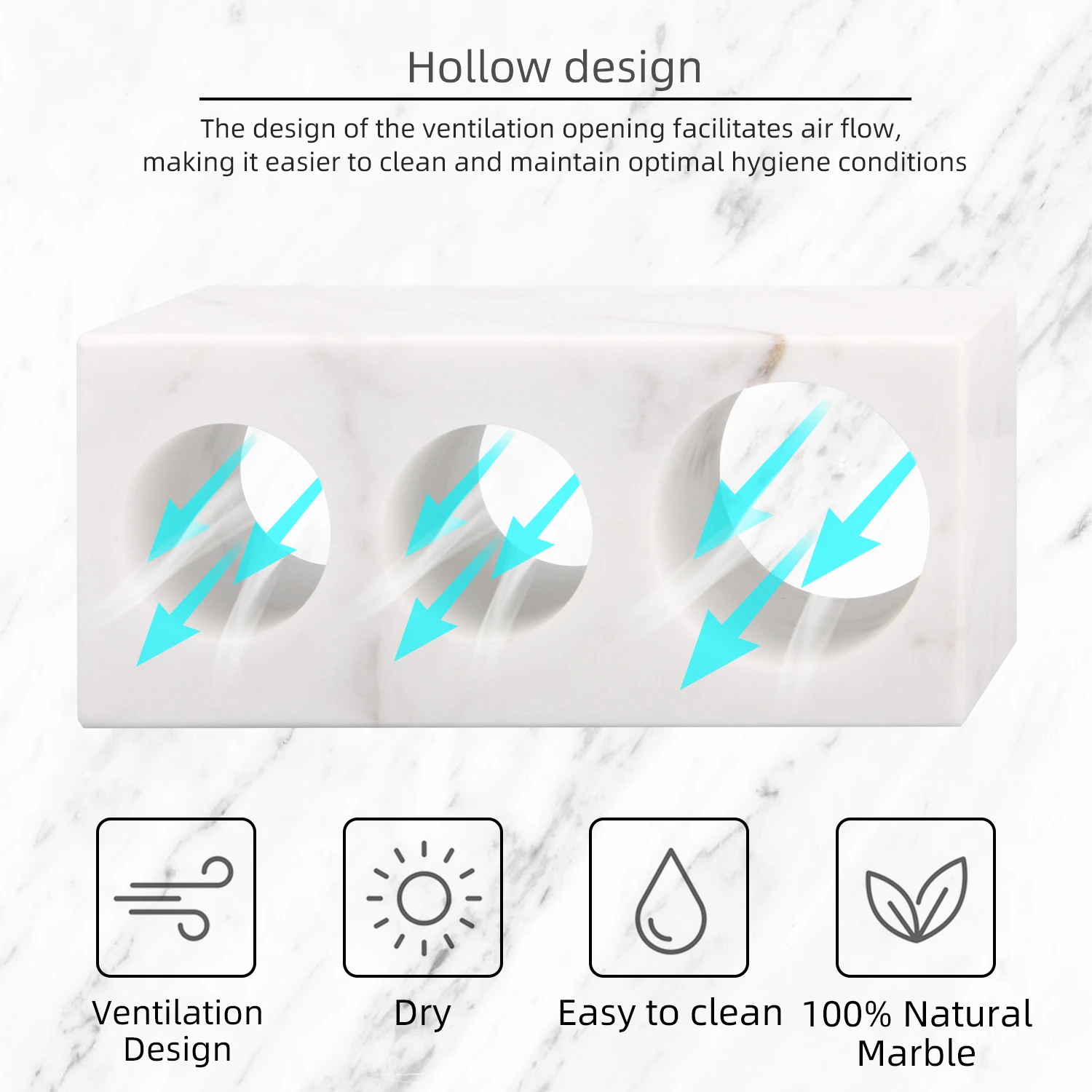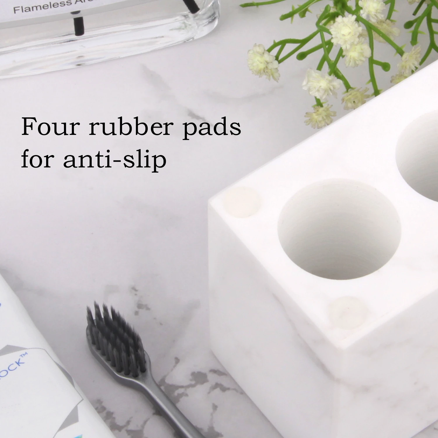 Natural Marble Toothbrush Holder 3 Slots, Stone Bathroom Organizer Countertop, Toothbrush and Toothp